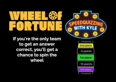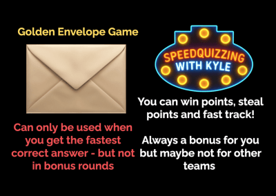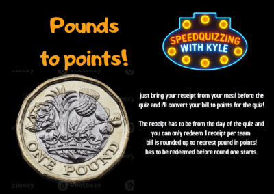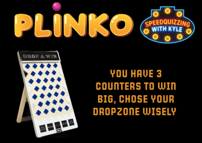 Hosted by Kyle McLachlan, an experienced and engaging quizmaster, SpeedQuizzing events are perfect for pubs, private parties, corporate events, and fundraisers. Each quiz can be fully customised, with options for themed quizzes (TV, film, music, Halloween, Christmas, etc.) and unique bonus games like SpeedBingo, Plinko, Play Your Cards Right, and Chase the Ace and much more — all adding extra excitement and opportunities to win prizes.